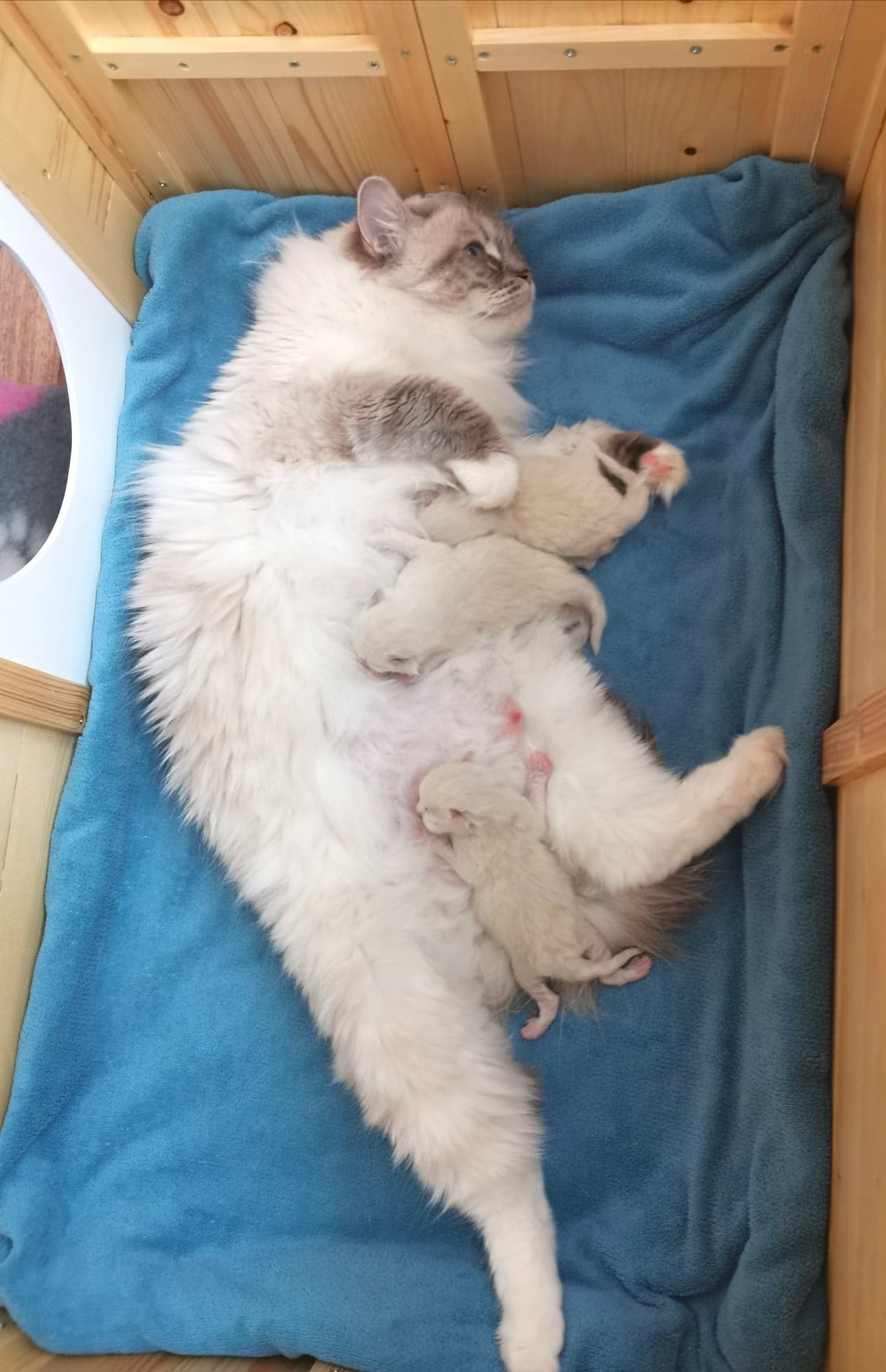 V pondělí 12.4.2021 chvilku po půlnoci se naší Sheetunce narodila tři krásná koťátka :-) .